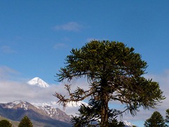 Through the border on the Argentinian side. Volcan Lanin in the background.